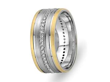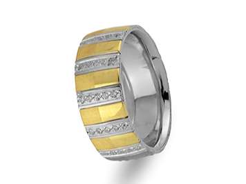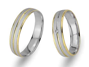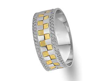 Pırlanta Tek Taşlı Sarı ve Beyaz Altın Klasik Alyans
