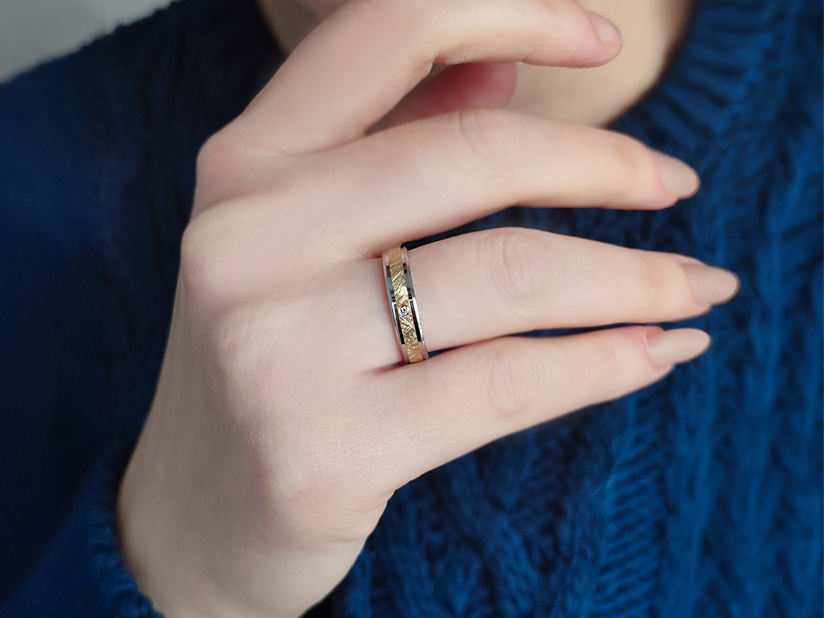 Pırlanta Tek Taşlı Sarı ve Beyaz Altın Mat Klasik Alyans