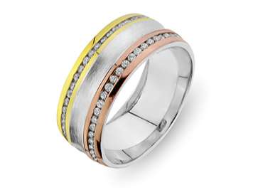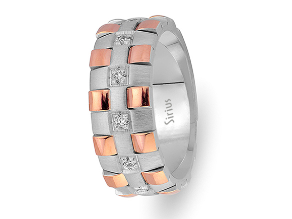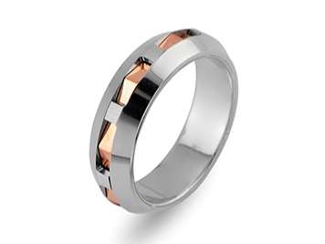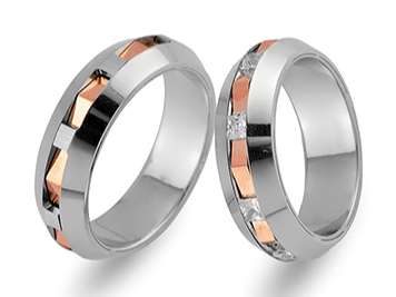 Prenses Kesim Pırlanta Taşlı Kırmızı ve Beyaz Altın Alyans