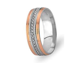Prenses Kesim Pırlanta Taşlı Kırmızı ve Beyaz Altın Alyans
