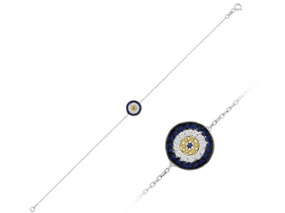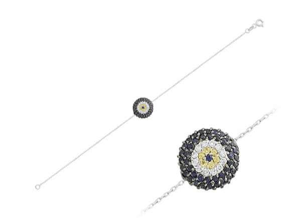 Safir ve Pırlanta Taşlı Nazar Boncuklu Bileklik