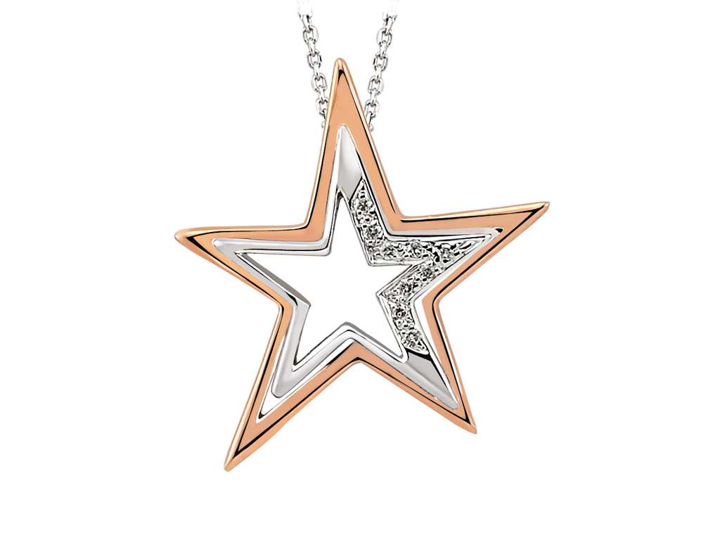 Kırmızı ve Beyaz Altın Pırlanta Taşlı Yıldız Kolye