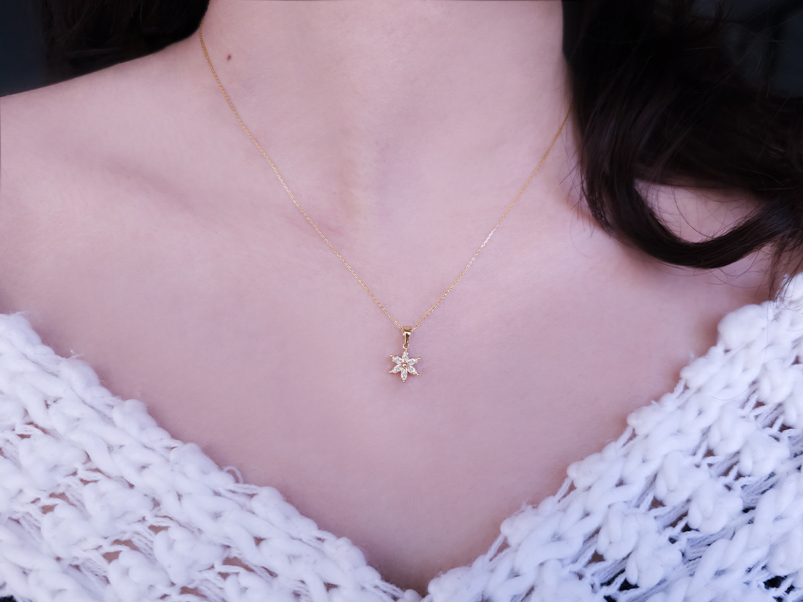 Pırlanta Mini Çiğdem Çiçeği Kolye