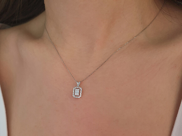 Pırlanta Taşlı Kare Kolye