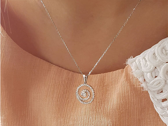 Pirlanta kalp kolyenin eni ve boyu 2,5 cm'dir. Sik kivrimlari ile farkli bir kalp kolyedir. Zinciriyle birlikte yaklasik 5 gram agirligindadir. Kolyede 49 adet pirlanta mevcuttur.