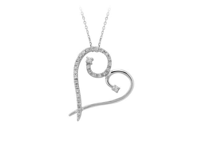 Pirlanta kalp kolye, 2 cm eninde olup, boyu 2,3 cm'dir.
