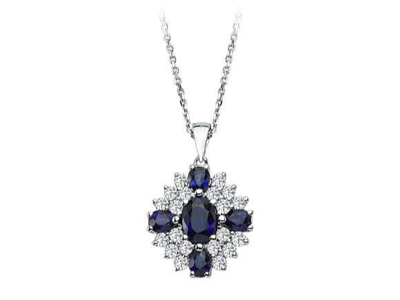 Pırlanta ve Damla Kesim Renkli Safir Taşlı Kolye