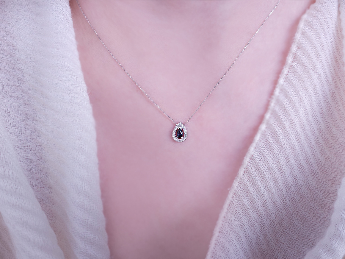 Pırlanta ve Damla Safir Taşlı Kolye