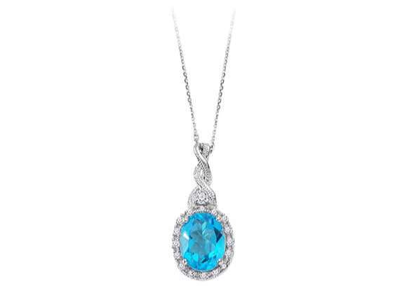 Pırlanta ve Damla Safir Taşlı Zeytin Dalı Kolye