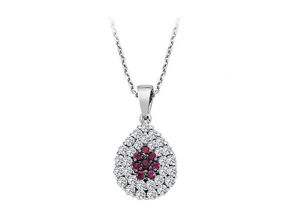 Pırlanta ve Damla Yakut Taşlı Su Yolu Anturaj Kolye
