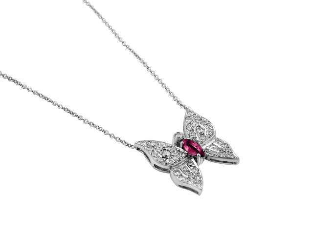Pırlanta ve Markiz Kesim Turmalin Taşlı Kelebek Kolye