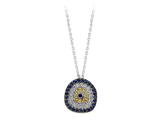 Pırlanta ve Oval Mavi Topaz Taşlı Anturaj Kolye