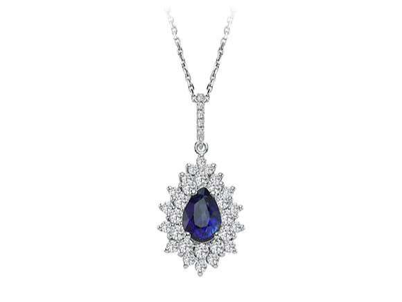 Pırlanta ve Oval Safir Taşlı Çiçek Kolye