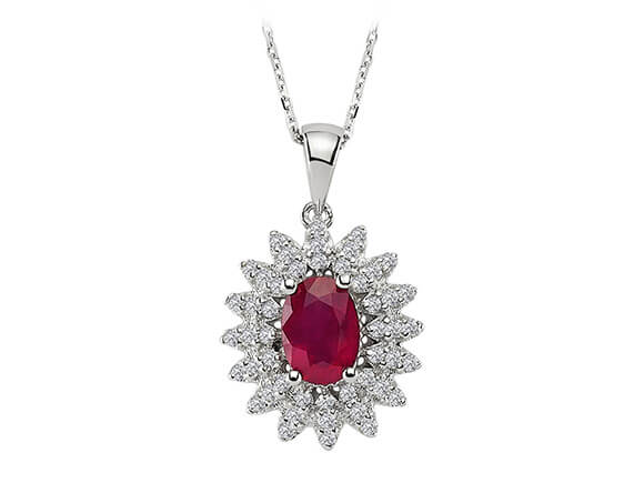 Pırlanta ve Oval Yakut Taşlı Kolye