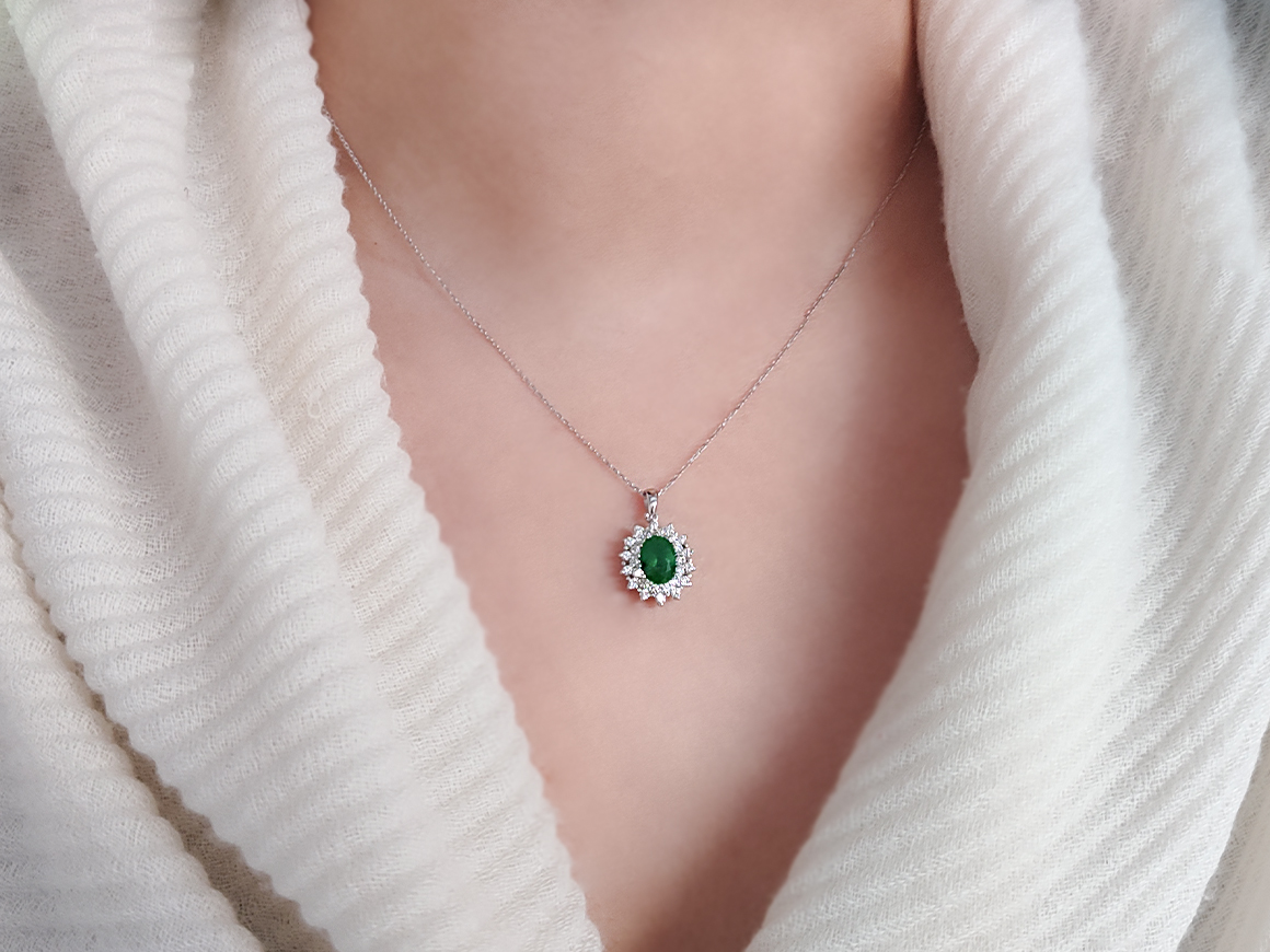 Pırlanta ve Oval Zümrüt Taşlı Kolye