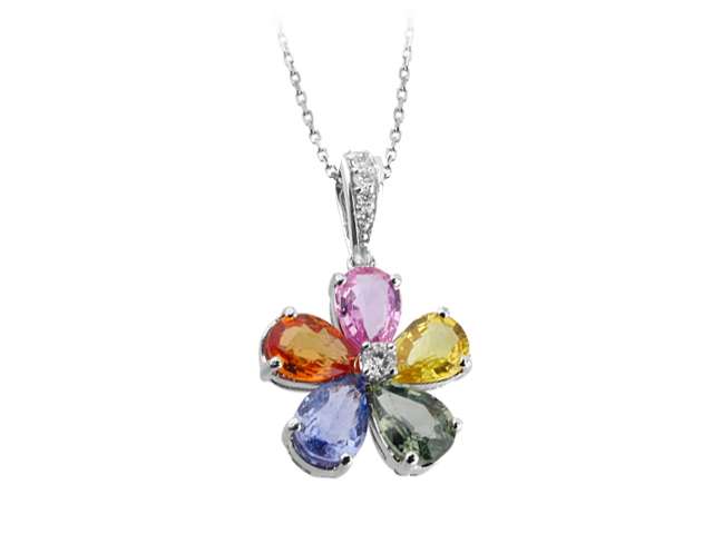 Renkli Safir ve Pırlanta Taşlı Kolye