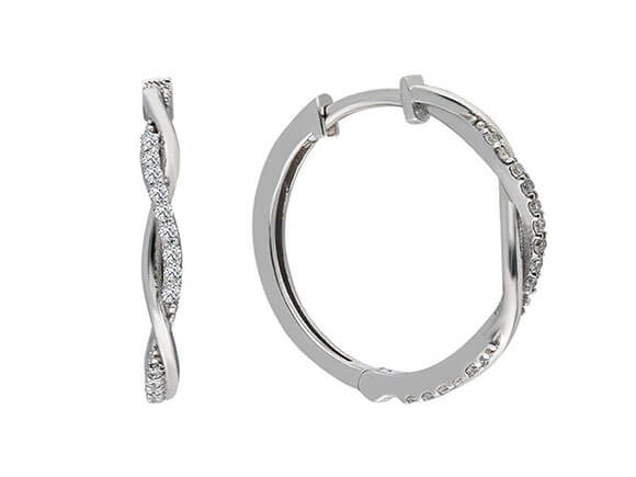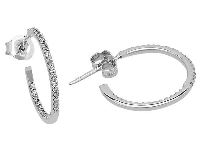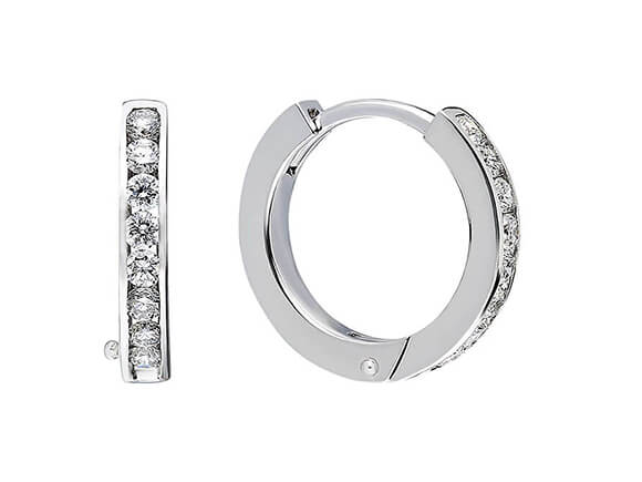 Pirlanta tasli halka küpenin çapi 0,8 cm'dir. Karsidan bakildiginda görünecek sekilde hem dis yüzeyinde hem de iç kisminda pirlanta taslar bulunmaktadir.