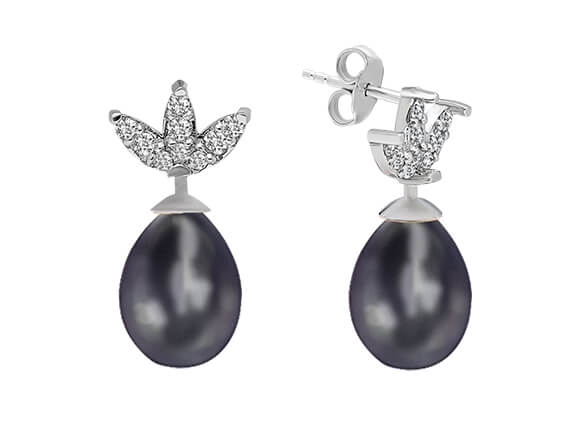 Markiz Kesim Pırlanta Görünümlü Siyah İnci Küpe