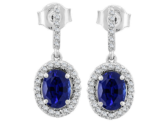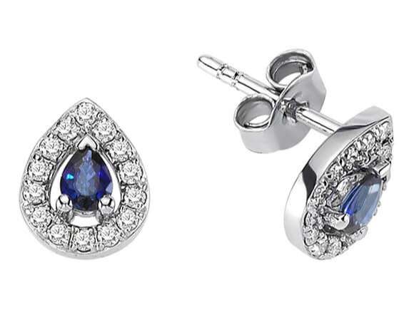 Baget Pırlanta ve Damla Safir Taşlı Modern Küpe