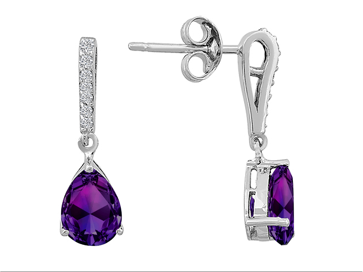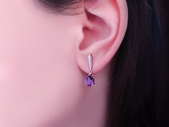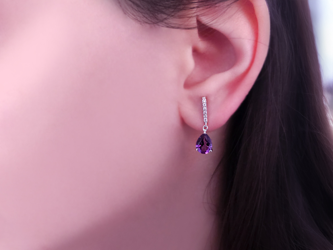 Pırlanta ve Damla Ametist Taşlı Küpe