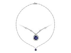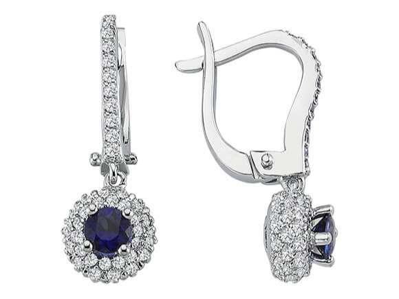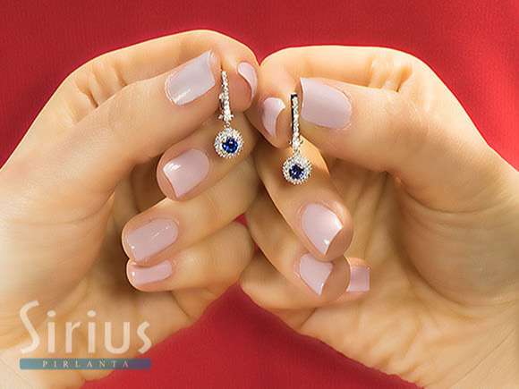 Pırlanta ve Damla Safir Taşlı Su Yolu Küpe