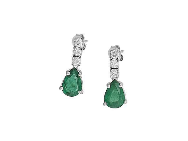Pırlanta ve Damla Zümrüt Taşlı Küpe