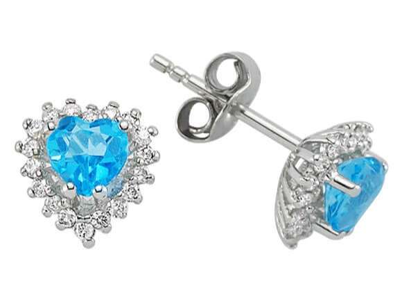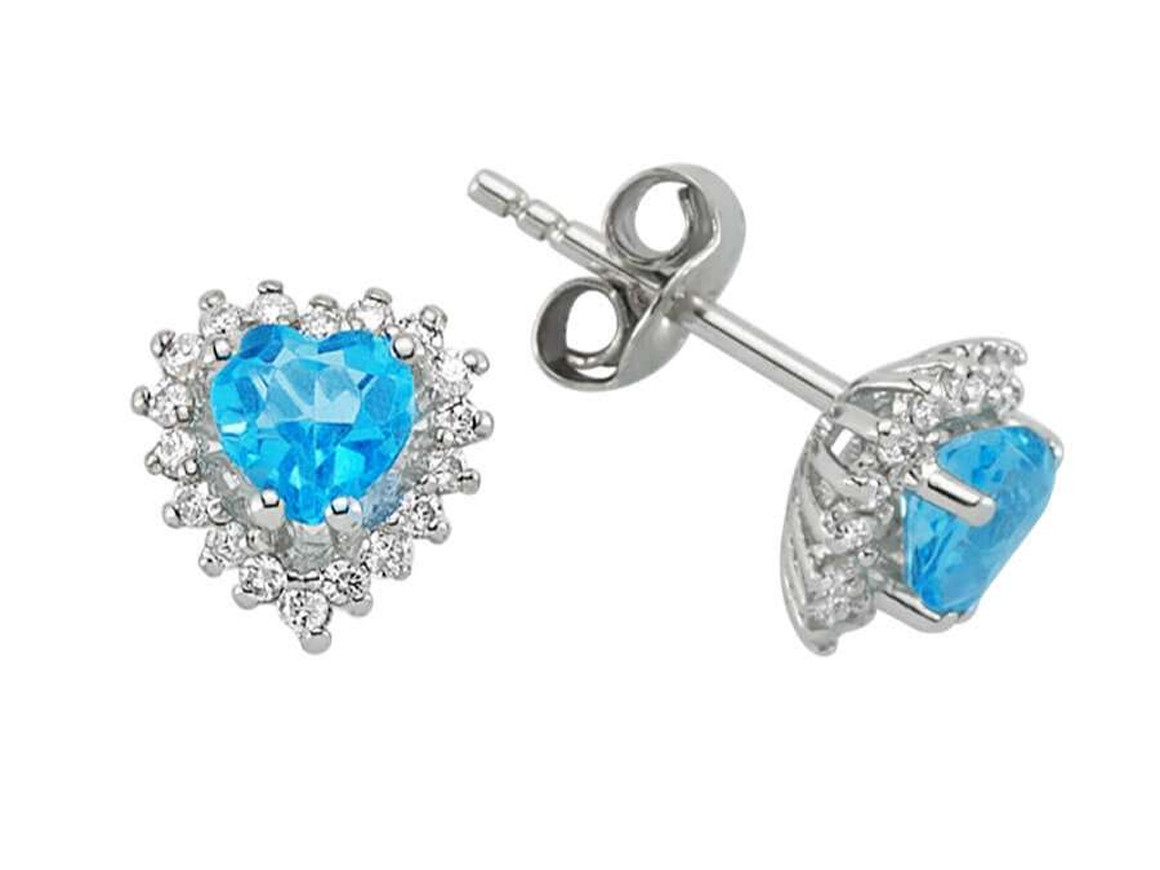 Pırlanta ve Kalp Mavi Topaz Taşlı Anturaj Küpe