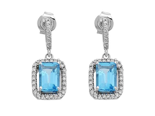 Pırlanta ve Oktagon Mavi Topaz Taşlı Küpe