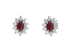 Pirlanta ve oval yakut tasli anturaj küpenin eni 1 cm, boyu ise 1,2 cm'dir. Klasik ve eskimeyen bir modeldir. Dogal kirmizi yakut etrafina pirlanta ile Kirmizi renkteki tas yakut olup, etrafi pirlanta ile çevrilmistir.