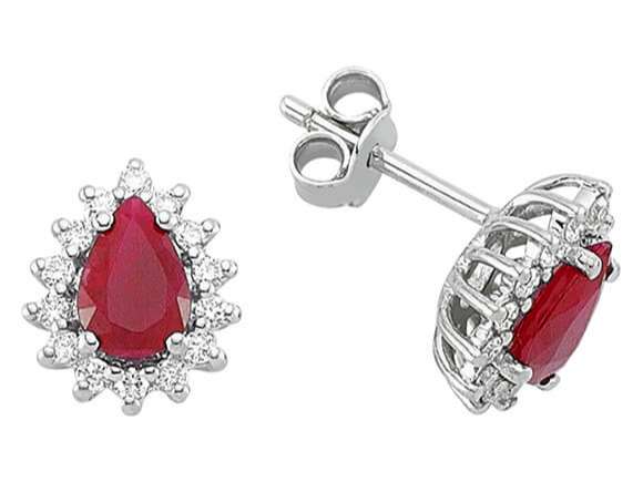 Pırlanta ve Oval Yakut Taşlı Küpe