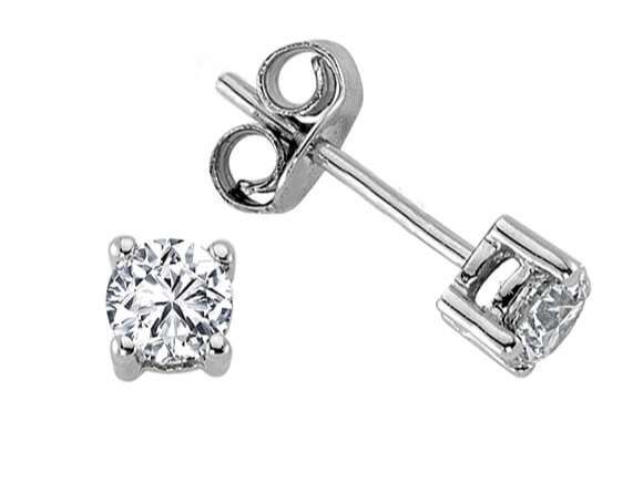 0,34 Karat Prenses Kesim Tektaş Beyaz Altın Pırlanta Küpe