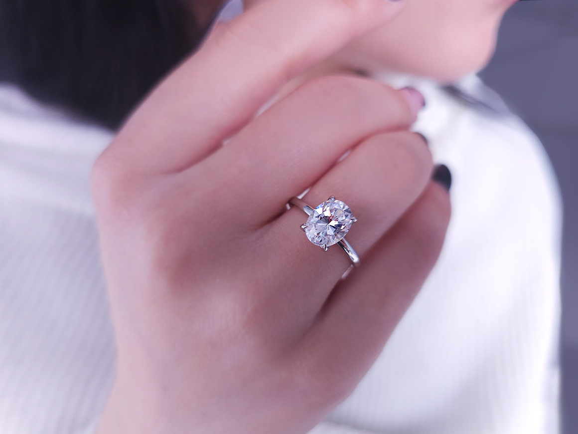 3 Karat Oval Beyaz Topaz Tektaş Yüzük