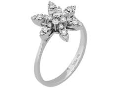 Pirlanta tasli yildiz yüzük modelinde, yildiz motifinin çapi 1,5 cm'dir. Yildiz seklinde islenmis beyaz altinin üzerine 25 adet pirlanta yerlestirilmistir. Her zaman rahatlikla kullanilabilecek bir modeldir.