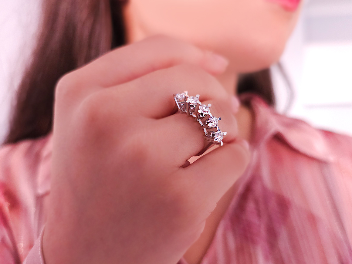 F Renk 1,20 Karat Pırlanta 5 Taş Yüzük