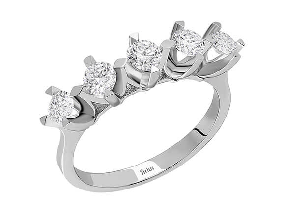 F Renk 0,60 Karat Pırlanta 5 Taş Yüzük