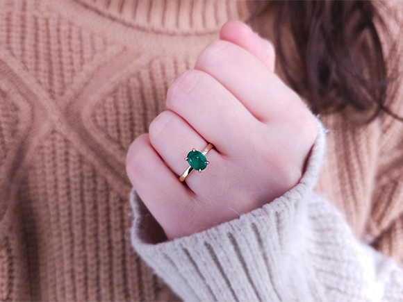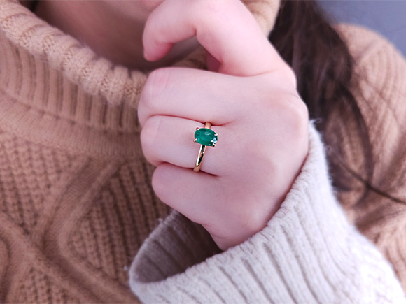 Oval Kesim Zümrüt Tektaş Yüzük