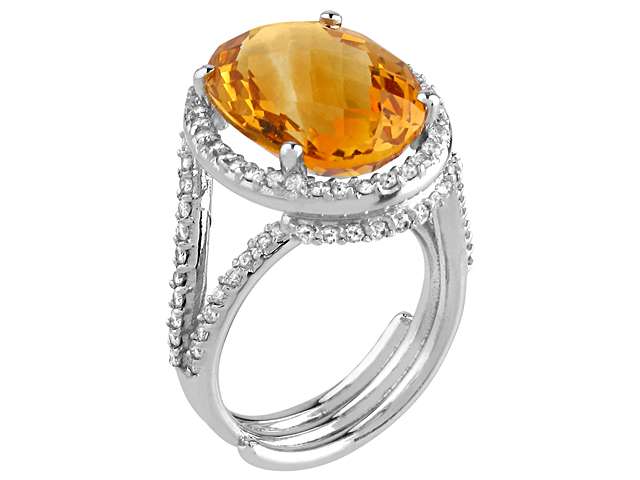 Pırlanta ve Büyük Oval Citrin Taşlı Yüzük