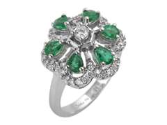 Antika yüzükleri çagristiran, oryantal bir görüntüye sahiptir. 6 adet damla kesim zümrüt ve biri daha büyük olmak üzere 43 adet pirlanta kullanilmistir.
