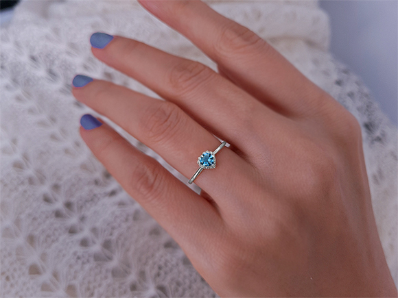 Pırlanta ve Kalp Mavi Topaz Taşlı Amare Yüzük