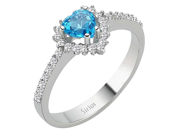 Pırlanta ve Kalp Mavi Topaz Taşlı Yüzük