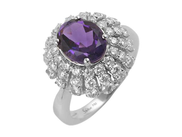 Pırlanta ve Oval Ametist Taşlı Yüzük