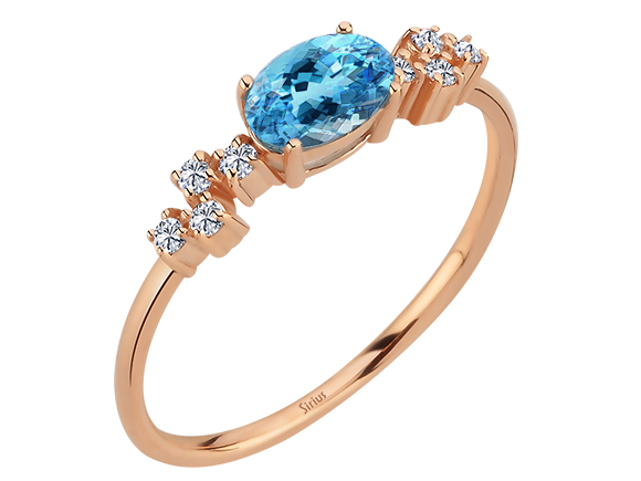 Pırlanta ve Oval Mavi Topaz Taşlı Aquala Yüzük