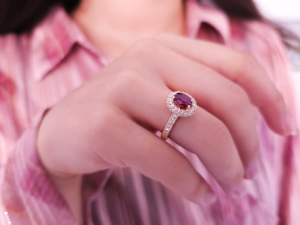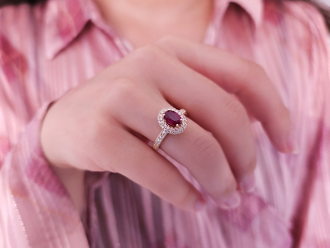 Pırlanta Oval Yakut Taşlı Roselia Yüzük
