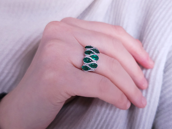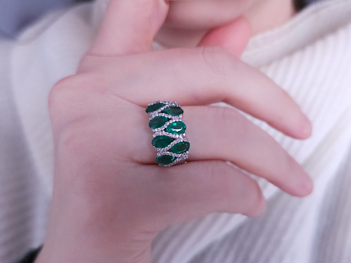 Pırlanta ve Oval Zümrüt Taşlı Yüzük