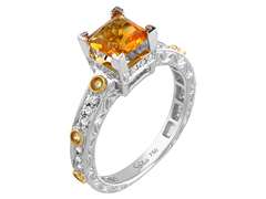 Prenses Kesim Citrin ve Sarı Safirli Pırlanta Yüzük